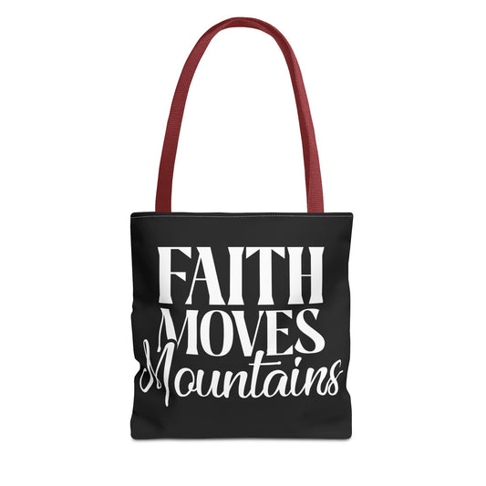 "Faith Moves Mountains Tote Bag - 13” All Over Print"